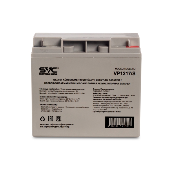 | Ссылка на сайт производителя | https://www.svc.kz/catalog/svintsovo_kislotnye_agm/akkumulyatornaya_batareya_svc_vp1217_s_12v_17_ach_181_77_167/ |
