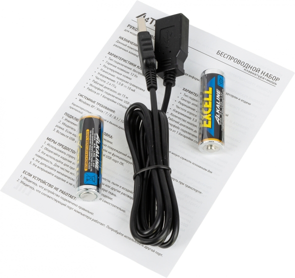 Комплектация 2хАА батарейки, USB приемник, Кабель-удлинитель USB
