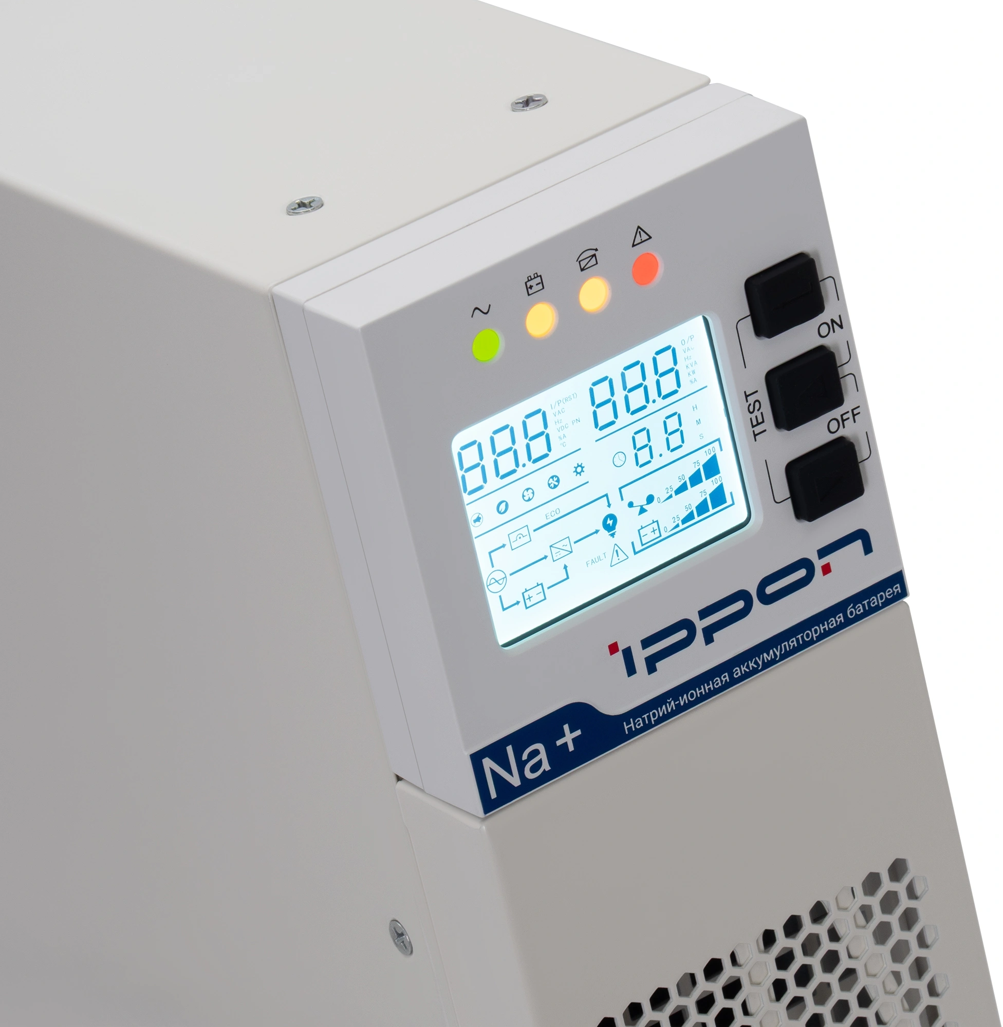 Натриевые аккумуляторные батареи, использующиеся в серии источников бесперебойного питания Na+, обладают рядом преимуществ по сравнению со свинцово-кислотными аналогами: