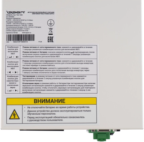 - Защита от короткого замыкания – входной автоматический выключатель предотвращает повреждение ИБП и подключенного оборудования.