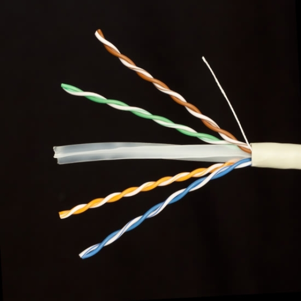 Это неэкранированный (UTP) 4 - х парный кабель 6 категории. В отличии от кабеля 5e категории имеет жилу 0.574 мм., что позволяет работать на частоте 250 МГц. В центре кабеля проходит разделительный канал, препятствующий переплетению пар между собой.Также по стандарту 6 категории, каждая пара имеет свой шаг скрутки. Кабель имеет стандартную PVC оболочку, применяется при прокладки внутри помещения.