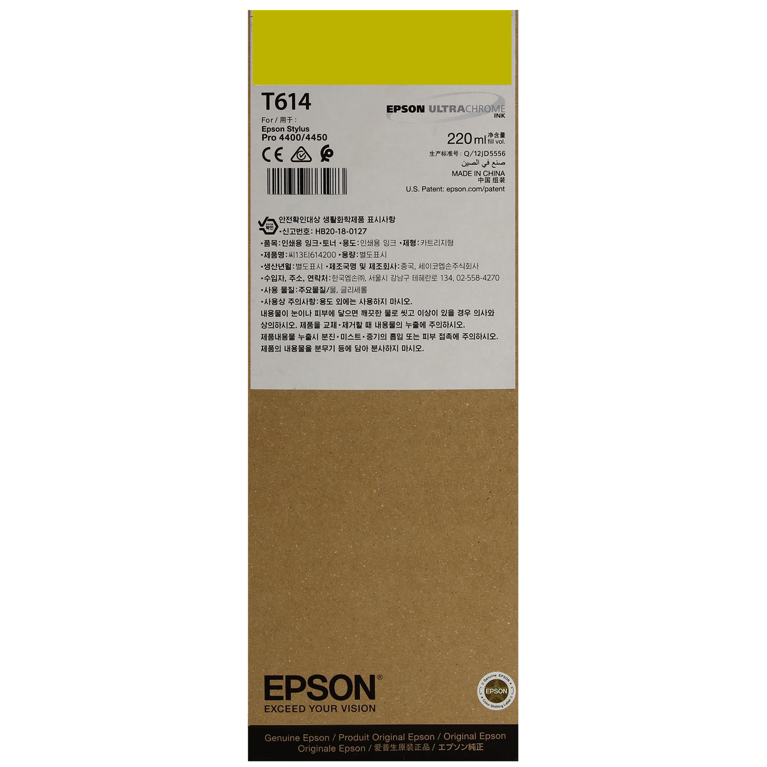 | Ссылка на сайт производителя | https://www.epson.eu/en_EU/products/ink-and-paper/ink-consumables/singlepack-yellow-t614400-220-ml/p/2598 |