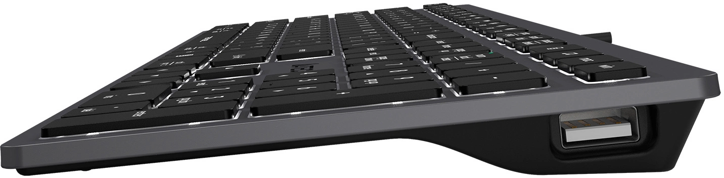 Клавиатура имеет два встроенных USB-порта, что идеально подходит для быстрого подключения или зарядки других USB-устройств.