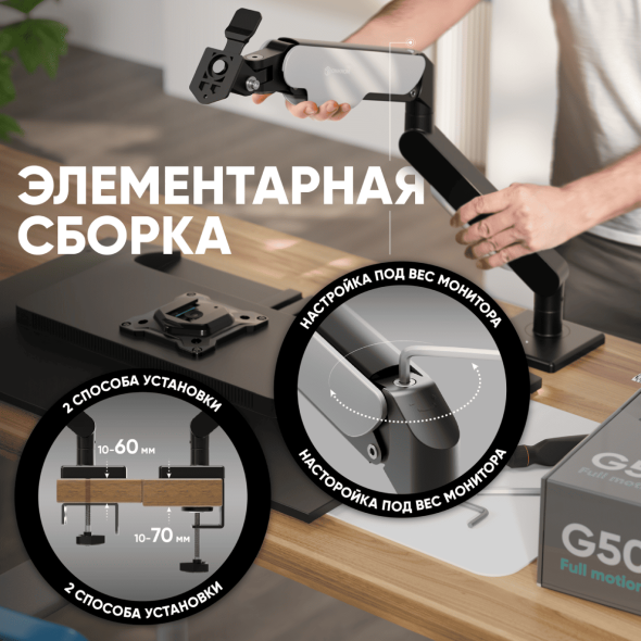 Кронштейн ONKRON G50 настольный для одного монитора