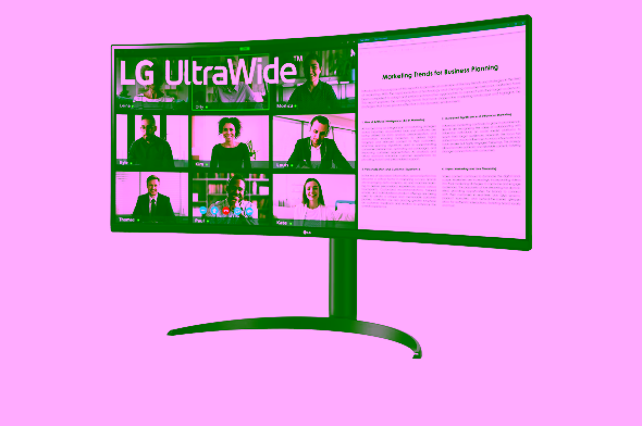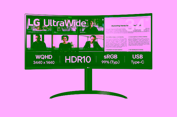 Модель 34WR55QK позволяет одновременно отображать контент с двух компьютеров благодаря функции Picture-by-Picture (PBP), что способствует более эффективной работе.
