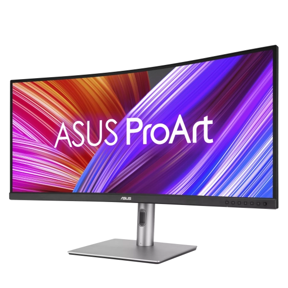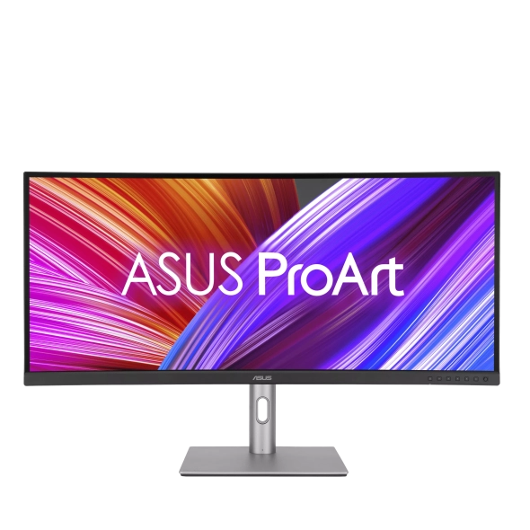 Профессиональный изогнутый монитор ASUS ProArt Display PA34VCNV – 34,1 дюйма, IPS, соотношение сторон 21:9, разрешение 3440 x 1440, радиус кривизны 3800R, 100% sRGB / Rec.709, точность цветопередачи ΔE < 2, сертифицирован Calman, док-станция USB-C, блок питания PD 96 Вт, разъем RJ45, эргономичная подставка, экологичность.