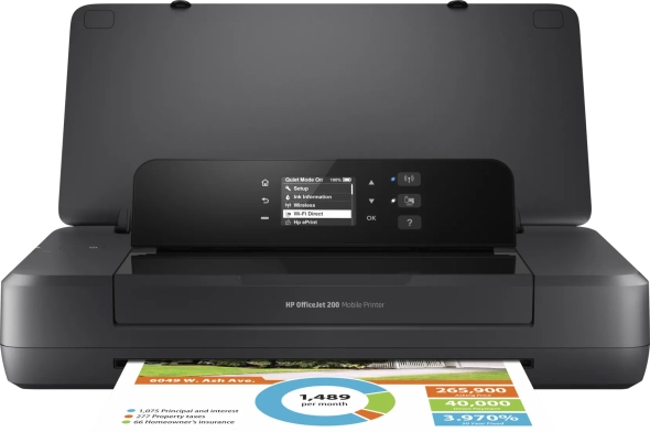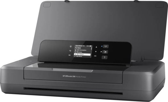 Струйный цветной мобильный принтер HP OfficeJet 202 формата А4 с компактным портативным дизайном, высоким качеством печати (1200dpl), черно-белым графическим дисплеем, а также поддержкой беспроводного подключения WI-Fi и USB. Мобильный принтер работает как от сети, так и от аккумулятора