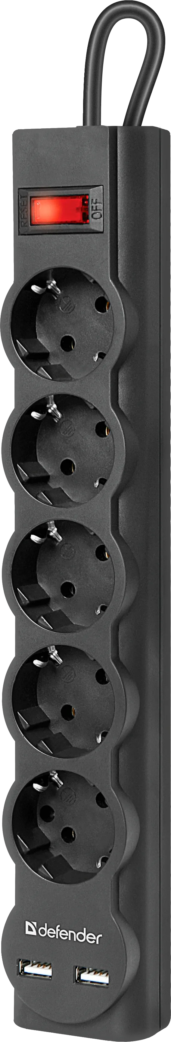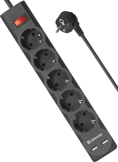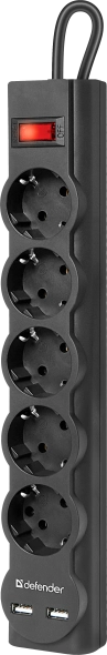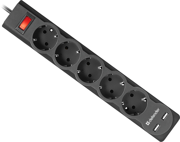 Сетевой фильтр Defender DFS 755 (99755) на 5 розеток оснащен двумя USB разъемами – удобный способ организации питания и защиты подключаемого оборудования.