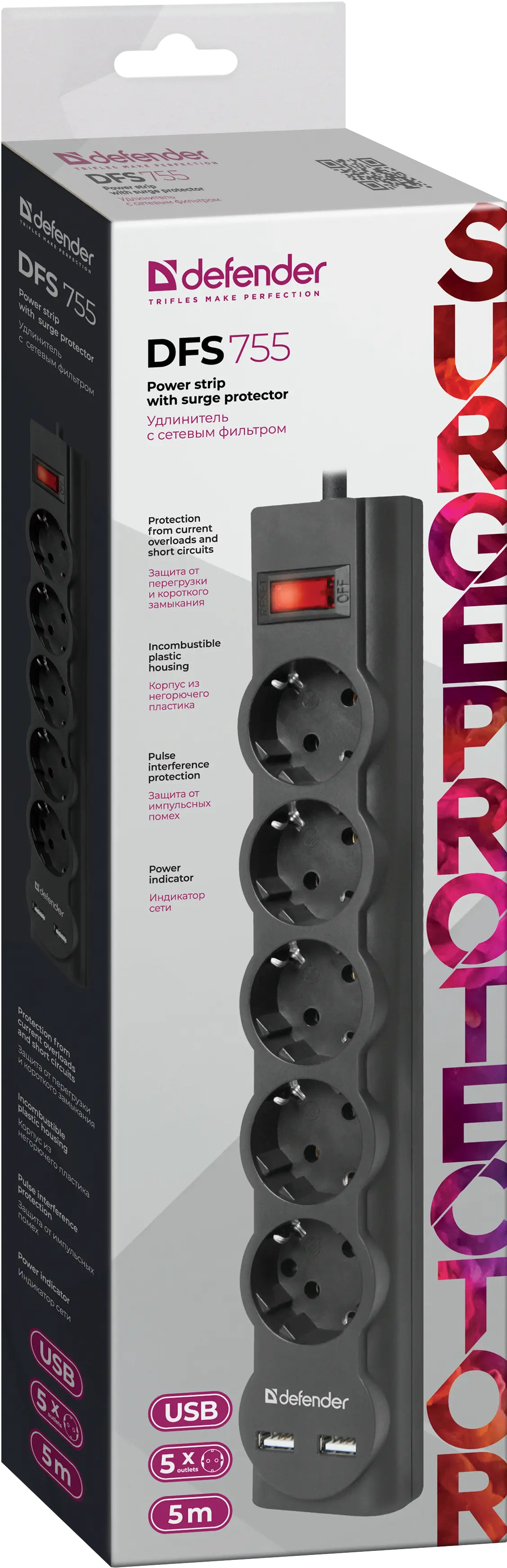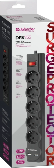 | Ссылка на сайт производителя | https://defender.ru/catalog/surge-protectors-1/dfs-755-5-0m-2xusb-2-1a-5-outlets |