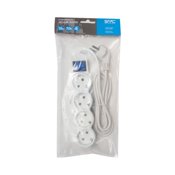 Сетевой фильтр SVC ZP4S-18M— практичное решение для безопасного подключения электроники и бытовой техники дома или в офисе.