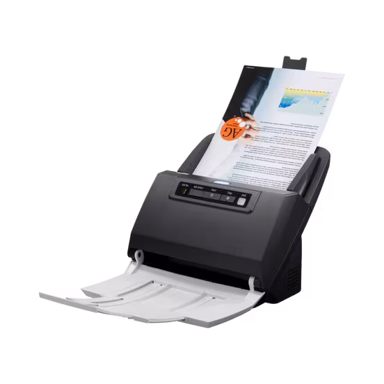 Конструкция сканера включает в себя впечатляющее устройство подачи документов на 75 листов с функцией обработки пачек смешанных документов для увеличения производительности.