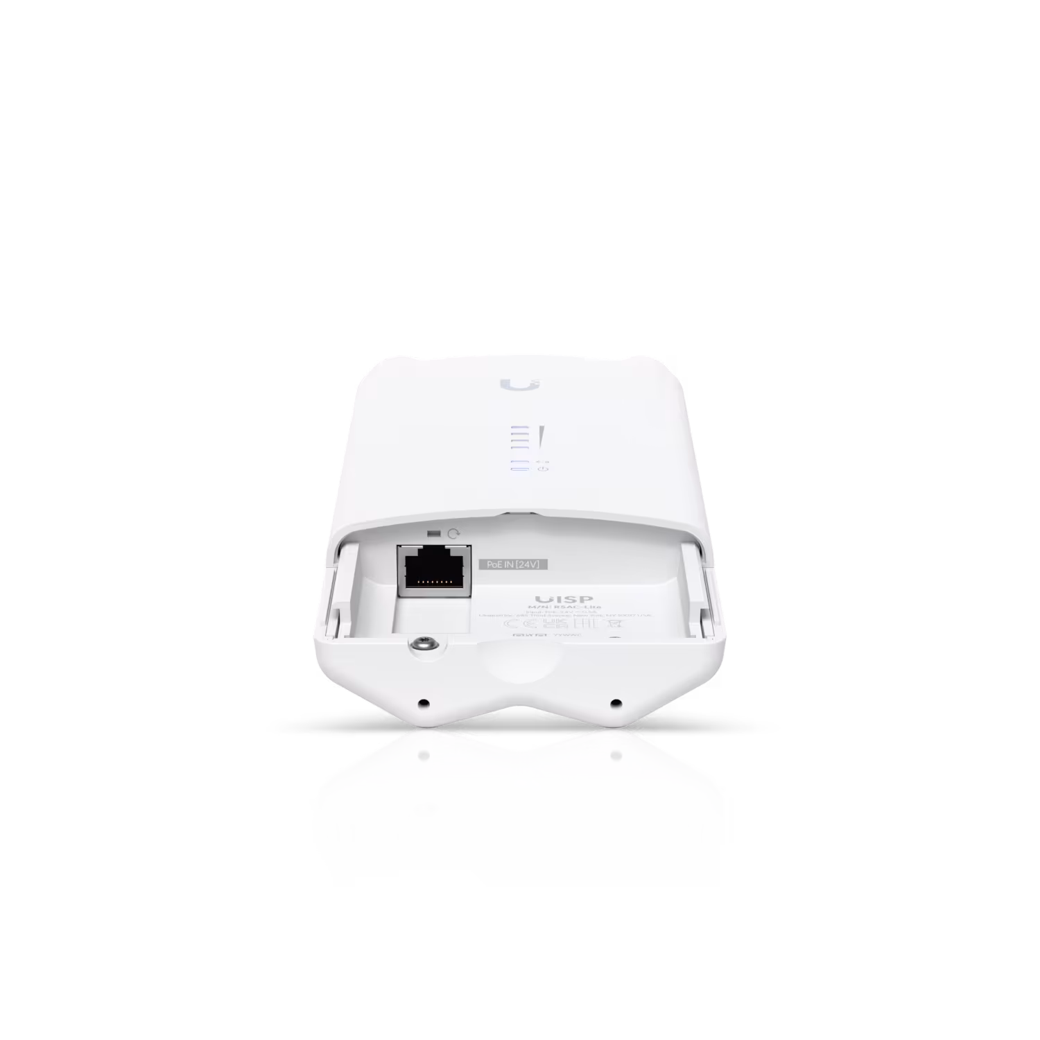 Сетевой интерфейс устройства стандартен и включает в себя два разъема RP-SMA для подключения внешних антенн, а также один порт Ethernet с пропускной способностью до 1000 Мбит/с. Последний, кроме своей основной функции, также обеспечивает питанием устройства. Для этого используется технология PoE, а именно ее стандарт Passive PoE 24V. Такой подход позволяет отказаться от прокладывания дополнительных кабелей, что особенно удобно в случае установки устройства на вышку или мачту.